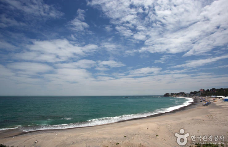 넓은 백사장의 잔잔한 모래와 동해의 청정해역, 여유있는 주변 공간과 인근의 갖은 편의시설이 있고 동해의 바닷물을 이용하여 온천을 즐길 수 있는 해수탕이 있어 새로운 체험을 할 수 있고, 해수탕 옆은 주차공간과 송림이 개방되어 있다. 또한, 모터보트, 바나나보트 등 수상 레저를 즐길 수 있다. 출처 : 대한민국구석구석(korean.visitkorea.or.kr) → 펜션에서 약 440m, 도보로 약 5분 거리
